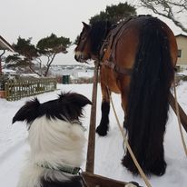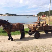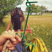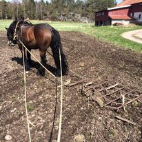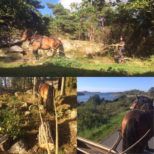 Hästen är en fantastisk medarbetare i mitt företag. Oftast använder jag häst till att slåttra ängar och dra ut timmer och ris, men det har även hänt att jag har harvat i trädgårdar innan rullgräset läggs ut eller gräsfrön sås. Jag kör också häst och vagn, eller släde om vädret tillåter, på beställning.